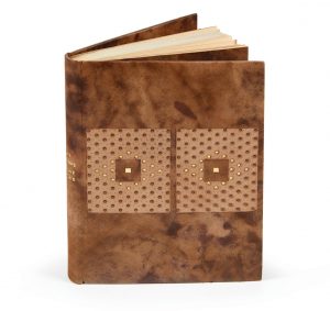 Paris, Au Sans Pareil, 1920. In-12, maroquin lavallière marbré, dos lisse, chaque plat orné de deux carrés mosaïqués de veau beige avec semé de points à froid ou dorés et carré doré au centre, doublures et gardes de maroquin de même ton, tranches dorées sur témoins, couverture et dos conservés, chemise, étui (Leroux, 1972).