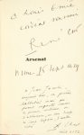 Première version d'Arsenal, le recueil de seize poèmes fut adressé à Paul Éluard qui, dès octobre 1929, invita Char à Paris où il fi t la connaissance d'André Breton, avant d'adhérer au groupe surréaliste en décembre. (Coron, René Char, BnF,2007, nº 14.)