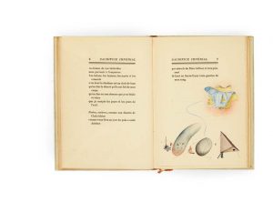 Recueil unique confié par Paul Éluard au peintre Henri Goetz qui l'a décoré de 7 gouaches et aquarelles originales dont deux à pleine page ainsi que sur les plats de la reliure.