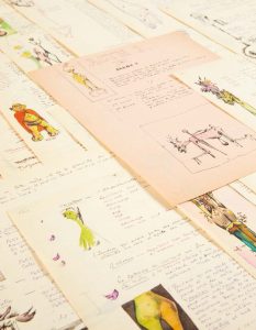 Manuscrit autographe d'une pièce de théâtre inédite, de la main de Mario Prassinos: il est illustré d'une quarantaine de dessins surréalistes à l'encre et à l'aquarelle.