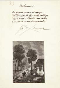 Manuscrit autographe signé de la première strophe de Balances: