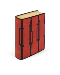Fort in-8, maroquin noir, dos lisse et plats ornés d'un décor mosïqué de grandes pièces de toile vieux rose, non rogné, tête dorée, couverture et dos conservés, étui (Leroux).