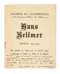 Galerie du Luxembourg. Hans Bellmer, dessins 1935-1946. Paris, 1947.