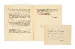Sur une languette de papier, note autographe signée: “J'avais travaillé sur ce texte - catalogue - pour le raccourcir en vue d'une traduction en anglais (pour un catalogue de la Hugo Gallery, New