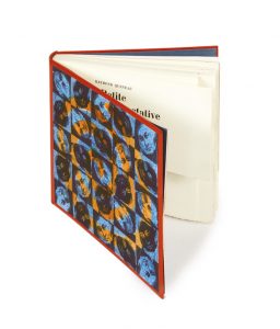 In-12, demi-maroquin corail, plats de soie sur laquelle on a imprimé une mosaïque de portraits photographiques de l'auteur, en positif et en négatif, imprimés en noir, bleu et jaune, non rogné, couverture et dos conservés, chemise, étui (Henri Mercher, 1959).