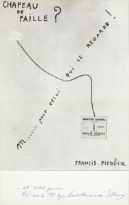 Elle est illustrée de la reproduction d'une oeuvre de Picabia portant “m...... pour celui qui le regarde ! ” et, en pied: “... et roses pour Fr' en 6 ? qu' habillarrose Sélavy.”