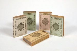 Petit almanach de la Cour de France. 1815 ; cartonnage vert amande de l'éditeur, étui.- Portrait de Louis XVIII et 3 scènes du retour du Roi.