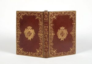 Exemplaire de dédicace relié aux armes de Madame Elisabeth, sœur de Louis XVI, comme lui enfermée au Temple et décapitée le 10 mai 1794. La luxueuse reliure en maroquin à dentelle tranche sur les simples reliures en veau fauve qui recouvraient habituellement les livres de cette princesse vertueuse.