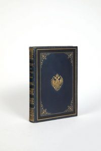 FRIEDMANN Alexandre. Rapport officiel sur la Marine et les travaux maritimes à l'Exposition universelle de Vienne en 1873. Vienne, Imprimerie Impériale et Royale, 1874 ; in-4, veau bleu nuit de l'époque, sur les plats décor doré et à froid en encadrement, armes dorées au centre, dos à faux-nerfs orné de motifs dorés, tranches dorées (Fr. Hollnsteiner k ; k. Hof-Buchbinder in Wien).