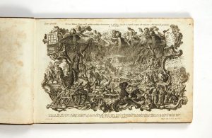 Titre en italien et en allemand sur deux colonnes et 100 planches gravées au burin par les frères Klauber d'après les compositions de Stockmann. L'inspiration baroque des artistes se manifeste par la richesse des décors encadrant les grandes figures, avec des petites scènes incorporées dans les bordures, mais aussi par le foisonnement des détails de la composition centrale.