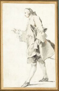Une paire : un homme au tricorne et une femme assise cousant