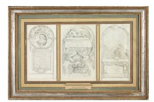 Trois contre-épreuves rehaussées à la pierre noire d'après des bas-reliefs