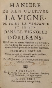 * BOULLAY (Jacques). Manière de bien cultiver la vigne, de faire la vendange et le vin dans le vignoble d'Orléans ; utile à tous les autres vignobles du royaume Troisième édition, beaucoup plus ample et plus exacte que les précédentes, et...
