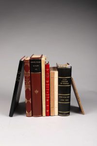 exemplaires). - ABRIC (Loïc). Le vin de l'Auxois. Histoire d'un vignoble. [Précy-sous-Thil], Ed. de l'Armançon, 1988. Grand in-8, carré, demi-basane noire. Avec une lettre autographe signée de l'auteur. - ABRIC (Loïc). Le vin de Bourgogne au XIXe siècle. [Précy-sous-Thil], Ed. de l'Armançon, 1993. Grand in-8, demi-basane bordeaux, dos lisse orné. Avec une lettre autographe signée de l'auteur. - DUBOIS (Curé de VOLNAY). Notice sur la paroisse, l'église, le village et l'Association des Vignerons de Volnay. St Cyr, patron de la Paroisse. Beaune, Impr. Romand, 1849. In-12, de XI-65 pp., demi-toile modeste de l'époque (coins émoussés). Avec les chapitres : Tableau des Confrères qui font partie de l'Association ; Nouveaux Confrères faisant partie de l'Association ; Notice sur la commune et le village ; Tableau du prix approximatif des Vins, Récoltes et jours de Vendange de 1592 à 1848. Défauts de pagination sans manque apparent. Cachet ex-libris Batault à Nolay. - FRÉMIET (Commandant). Réflexions sur la position des propriétaires de vigne, sur leurs plaintes, leurs propositions, et les objections qu'on y a faites dédiées à Messieurs les Députés du département de la Côte d'Or. Dijon, Victor Lagier, 1830. In-8, [3] f., 42 p., demi-basane rouge moderne, avec de nombreux feuillets blancs au début et à la fin (rousseurs). Importance de la pétition. Erreurs dans les calculs de cette pétition sur les vins fins, sur les vins communs. Rectification des erreurs. Résultat des perceptions. Recherche de la cause qui gêne le commerce des vins. Propositions pour remplacer l'impôt actuel des boissons. Remarque sur les octrois à Paris. Etc Provenance : Bibliothèque Moingeon-Ropitau à Pommard (cachets) ; ex-libris armoriés ; puis Bernard Chwartz avec son chiffre. (Chwartz, F-57). - Bulletin de l'Union Agricole et Viticole de Chalon-sur-Saône. Années 1899-1900-1901-1902-1903. 58 numéros en 1 fort vol. in-8, demi-basane noire époque. Tête de collection de cette revue mensuelle, offrant une documentation pertinente sur les travaux, les recherches et préoccupations, les expériences et récoltes, concours, expositions, etc. Dès Janvier 1899 on retrouve des écrits de J. Roy-Chevrier présenté comme nouveau membre puis Secrétaire Général adjoint, Secrétaire Général, et enfin propriétaire-viticulteur en 1903. - FONDET (Maurice). Le Domaine et les Vins de l'Hôpital de Beaune. Thèse pour le doctorat. (droit). Beaune, R. Bertrand, 1910. In-8, [4] f., 165 p., broché (accrocs au dos). " Si les ouvrages, qui traitent de l'Hôpital de Beaune proprement dit, sont nombreux un point cependant, nous parait avoir été délaissé, à savoir l'ensemble de son domaine, spécialement ses vignes et ses vins " explique l'auteur. Ouvrage remarquablement bien documenté. (Chwartz, F-45). Envoi autographe de l'auteur " À Madame Latour, Souvenir de reconnaissance et de respectueuse affection, 5 Juillet 1910 ". - Congrès National Viticole de Mâcon. Compte-Rendu in extenso des Travaux du Congrès. 20-23 Octobre 1887. Mâcon, 1888. Fort volume in-8, XIX-606 p., 3 planches dépliantes, 16 pages publicitaires, percaline bordeaux à la bradel, couv. conservée [Ateliers Laurenchet]. Textes signés : Marquis de Barbentane, baron Du Teil, Benoist, Gaudet, Miédan, Arcelin, Pulliat, Viala, Battanchon, etc Envoi autographe du Marquis de Barbentane à Henry Sagnier l'un des participants au congrès. Soit 9 volumes.