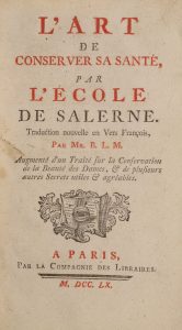 * BRUZEN DE LA MARTINIÈRE (A.-A.). L'art de conserver sa santé. Par l'École de Salerne. Traduction nouvelle en vers françois, par Mr. B.L.M. [i.e. Bruzen de la Martinière]. Augmenté d'un Traité sur la conservation de la beauté des dames, & de...