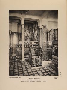 * CAFÉS, BARS, restaurants. Quarante planches. Paris, Librairie de la Construction moderne, [vers 1925]. Album in-4 oblong, [4] p., 40 planches en phototypie, en feuilles sous portefeuille éditeur (coins émoussés, tache claire au plat sup.).