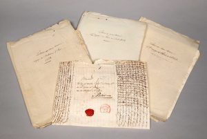 modérés). Importante correspondance d'Arnaud Pierre de Castarède, fils d'un négociant bordelais, auquel il a succédé dans cette activité. Il hérita de vignobles, et en acquit par la suite, dans le Bordelais, le Périgord et le Pays basque. Les lettres, adressées à son épouse résidant à Tours, puis à Pau, ont été classées par la destinatrice, dans plusieurs chemises titrées " Lettres de mon mari ". Chacune correspond à une série de déplacements, notamment : deux voyages à Paris, en 1822 et 1823 ; un voyage à Bordeaux et Pau en 1823 ; un autre à Pau, Bordeaux et Paris en 1825 et 1826. Le premier séjour à Paris vise à régler des questions judiciaires, l'une d'elle notamment relative à la vente de la Verrerie de Sèvres, ancienne propriété de madame de Pompadour, acquise en 1795 par le beau-père du rédacteur, Guillaume Joseph de Cazeaux. Emaillée d'anecdotes, cette correspondance reflète un certain univers aristocratique du Paris de l'époque ; il y est souvent question de déjeuners et dîners, de la vie des salons. Les séjours dans le Sud-Ouest sont l'occasion de relever de multiples informations relatives à l'activité viticole. Quelques lettres d'une autre main y sont jointes.