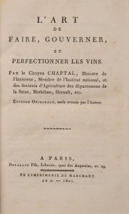 * CHAPTAL (Jean Antoine). L'art de faire, gouverner et perfectionner les vins. Paris, Delalain, An X-1801. In-8, [2] f., 194 p., [1] f. (table). [Relié à la suite]. LOMBARD (C.-P.). Manuel nécessaire au villageois pour soigner les abeilles, et en...