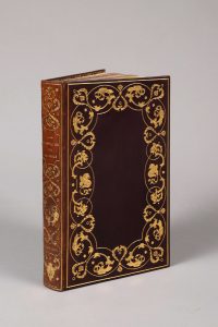 riche décor doré au dos et aux plats, filets dorés aux coupes, roulette dorée au bord du contreplat, tête dorée, couv. conservée, étui [Samblanx] (dos uniformément passé, fente à l'étui). Édition collective dans le goût romantique, de textes célèbres sur la gastronomie française (La Physiologie du goût par Brillat-Savarin, La Gastronomie par Berchoux, L'Art de dîner en ville, par Colnet, etc.) comprenant également un florilège de chansons bachiques.