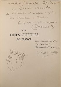 [Laurenchet]. Édition originale de cet excellent témoignage sur le monde gastronomique durant l'entre-deux-guerres. Une partie est consacrée aux diverses associations gastronomiques (Club des Cent, Académie des Psychologues du Goût, les Compagnons de Cocagne, etc.). Une autre aux grands traiteurs, chefs et cordons-bleus de Paris et province. Un dernier chapitre traite des culinographes : Ali-Bab, Escoffier, Ph. Gilbert, A. de Croze, etc. Près de 150 portraits d'après les photographies, et d'autres illustrations sur planche non chiffrées. Ex. Camille Rodier. Bel envoi autographe des auteurs accompagné d'un amusant petit autoportrait de Curnonsky. Il y est fait allusion à la Confrérie des Chevaliers du Tastevin dont Camille Rodier était chancelier.