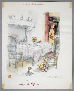 couv.). Édition originale du plus luxueux ouvrage publié par le Prince des Gastronomes, illustré de 25 lithographies originales en couleurs de Georges Villa. Un des 10 exemplaires sur japon nacré, celui-ci n°9, comprenant ?1 dessin original, 1 bon à tirer, 1 suite en noir sur Rives des hors-textes, 1 suite des culs-de-lampe et des lettrines, et 3 planches refusées. Le dessin original au crayon et aquarelle illustre le chapitre La Cuisine Bourgeoise, signé et daté, avec sous-titre : La fée du logis. Tous les exemplaires sont signés par Curnonsky et Georges Villa à la justification.