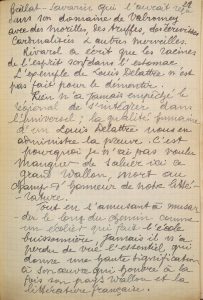 coins, dos à 5 nerfs, auteur et titre dorés [Lobstein-Laurenchet]. Manuscrit probablement inédit. Il s'ouvre sur notice sur Joseph de Pesquidoux (qui succède à Jacques Bainville à l'Académie française) : " Propriétaire dans les Landes d'un vaste domaine qu'il exploite lui-même, M. de Pesquidoux a parlé de la vie de la métairie, de la vigne, de la coupe des bois, etc dans ce qu'il a appelé ses livres de raison qui rappellent les Géorgiques de Virgile et le Traité des choses rustiques d'Olivier de Serres, et il en a fait un chef d'oeuvre " ; Suivent des considérations sur la littérature régionale de langue française ; et enfin un portrait de son ami Louis Delattre, médecin, conteur et gastronome : " Il savourait les délices de la table, comme il savourait la vie " relatant ses souvenirs de pot-au-feu, pommes de terre, etc avec une amusante anecdote sur le péché de gourmandise. Manuscrit caractéristique du style enjoué de son auteur, qui porta bien son surnom de " Prince de la Treille ".