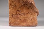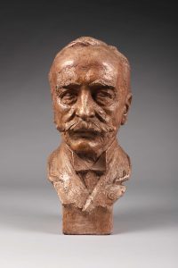 * [ESCOFFIER]. Buste d'Auguste Escoffier. Terre cuite vernissée. H. : 43 cm. Au dos : " Étude pour le portrait d'Auguste Escoffier " incisé dans la terre cuite. Signature non identifiée.