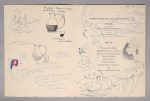 couverture du menu d'un dîner qui réunit à la Coupole, le 13 décembre 1956, les membre de la Société des Peintres-graveurs français. Exemplaire exceptionnel qui porte les signatures et messages autographes, certains accompagnés d'un dessin, d'une quinzaine d'artistes : Jacques Villon, Mario Avati (dessin), Antoni Clavé (avec dessin), Gromaire, Goerg (dessin), J.E. Bernier, Savin, Hermine David, J. de Coster, etc.