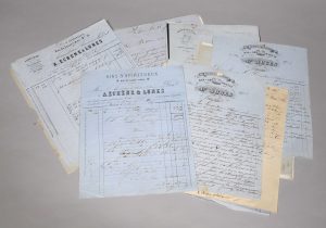 * [Manuscrit]. [Négoce]. [Pyrénées]. Ensemble de 61 lettres commerciales reçues par la maison de Léo et Ferdinand Limendoux, négociants en vins à Oloron-Sainte-Marie. 1864-1869. (Quelques accrocs de défauts d'usage). Importante correspondance...