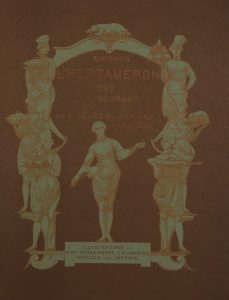 NIGNON (Édouard). L'Heptaméron des Gourmets ou les délices de la cuisine française. Avec des avant-propos de L. Descaves, H. de Régnier, L. Tailhade, G. Apollinaire, A. Mary, F. Fleuret et E. Godefroy. Dessins de O. Guillonnet et H. Varenne....