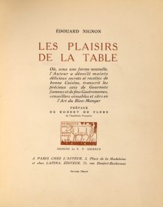 NIGNON (Édouard). Les plaisirs de la table où, sous une forme nouvelle, l'auteur a dévoilé maints délicieux secrets et recettes de bonne cuisine, transcrit les précieux avis de gourmets fameux et de fins gastronomes, conseillers aimables et...