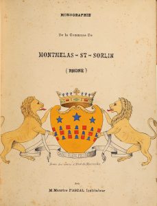 * [Manuscrit]. PASCAL (Maurice). Monographie de la commune de Montmelas-St-Sorlin (Rhône). Par M. Maurice Pascal, Instituteur S.l., [Montmelas], 1913. In-4, [2] f., 100 feuillets chiffrés, [2] f. (tables), demi-basane verte époque, dos à nerfs,...