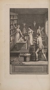 * PONCELET (Polycarpe). Nouvelle chymie du goût et de l'odorat, ou l'art de composer facilement, et à peu de frais, les liqueurs à boire et les eaux de senteurs. Paris, Delalain, An VIII [1800]. Deux tomes en 1 vol. in-8, LXXXII-251 p. ;...