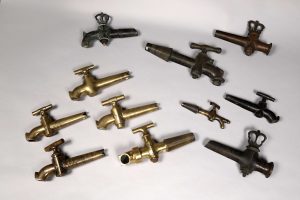 * 11 robinets de barriques et tonneaux, XIXe et XXe siècles. Bronze et cuivre pour la plupart.