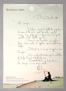 1946), chef du restaurant L'Osier à Tokyo. Ensemble exceptionnel et du plus haut intérêt qui reflète l'inspiration de Joël Robuchon au début des années 80. Touchant témoignage d'un chef communiquant ses recettes à l'un de ses confrères qu'il estime. On y joint : Lettre et billet autographes signés d'Alain Chapel à Jacques Borie.