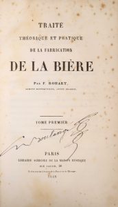 ROHART (F.). Traité théorique et pratique de la fabrication de la bière. Paris, Librairie agricole de la maison rustique, 1848. Deux tomes en 1 vol. in-8, XXIV-397p. + [2]f.-640p.-XV (table), 3 planches dépliantes, demi-basane bleue nuit, dos...