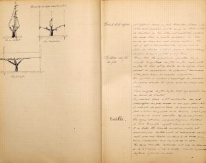 * [Manuscrit]. SEIGNOURET (Albert). Culture de la vigne dans le Médoc. Rapport de viticulture. Travail de fin d'études. S.l., [vers 1890]. Un cahier in-4, [45] pages, 11 figures, broché, couv. bleue portrant le titre manuscrit. Intéressant...