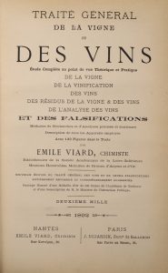* VIARD (Émile). Traité général de la vigne et des vins. Étude complète, au point de vue théorique et pratique, de la vigne, de la vinification, des vins, des résidus de la vigne et des vins et des falsifications Nantes, Viard, 1892. Fort...