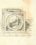 Some basic geometry and sometimes some basic optics typically follows, though more of the former than the latter. There may well be some basic Euclid, especially of simple geometrical shapes, basic constructions such as similar triangles, and three-dimensional illustrations of geometrical solids (most notably the fi ve regular or “Platonic” polyhedra).*4 The Euclidian and Platonic connotations were useful and served to make a philosophical point about the “ideal” status of geometry and therefore of art. Next we would expect to witness the basic geometry of projecting simple forms that are behind the picture plane on to that plane, given a fi xed point located at a given distance from the front of the plane. The really serious books depict compound solids in perspective and show how the ground plans and elevation of a complex objects, especially architectural components or whole buildings, can be projected at any given angle on to the picture surface. We might expect on occasion to fi nd provide alternative and abbreviated methods, some aimed at encouraging young devotees.