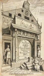 Édition originale de cet important traité de perspective. On sait peu de choses sur Andreas Albrecht; natif de Nuremberg, il était mathématicien et ingénieur militaire. Il inventa plusieurs instruments de mesure, dont certains sont décrits dans ses traités d'architecture et de perspective. Le beau titre gravé par Troschel représente les allégories de la géométrie, de l'optique et de l'arithmétique devant une façade en perspective; les planches techniques illustrent les règles de la perspective, de l'optique et du traitement des ombres. Les 6 dernières pages sont quant à elles constituées de vues de villes, de fortifications, d'intérieurs de maisons et d'une grande vue du Halsprunnerhof à Nuremberg avec une scène de tournois.