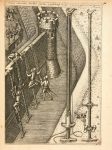 Melun, sous l'auteur, 1598. In-folio (340 x 235 mm) de 3 ff.n.ch. dont le titre dans un grand encadrement architectural gravé, une dédicace typographique à La Grange, gouverneur de Melun, et une grande planche d'encadrement architectural avec les armes de ce dernier, 44 pp. débutant par une dédicace «À la bande guerrière», avec 42 fi gures dans le texte gravées sur bois et 7 sur cuivre, et 60 feuillets (foliotés de 45 à 104) de 143 gravures (dont 6 à double page, 34 à pleine page, et 103 plus petites) à l'eau forte de la main de l'auteur; vélin souple (reliure de l' époque), étui moderne de maroquin vert.