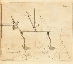 Bürgi in 1604, was further developed by Bramer in 1630 by means of a device that enabled one to draw accurate geometrical perspectives true to nature” (DSB).