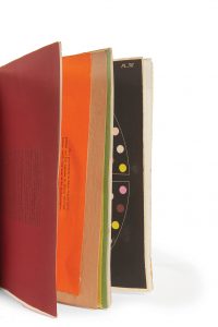 De la loi du contraste simultané des couleurs et de l'assortiment des objets colorés. Paris, Pitois- Levrault et Cie, 1839. In-8 (208 x 125 mm) de XV, 735 pp., 1 f.n.ch. (errata), 2 tableaux dépliants; demi-percaline rouge moderne.- Et un atlas in-4 (279 x 240 mm) de 1 f.n.ch. (titre), 2 pp. (explication des planches), 40 planches numérotées (la 33 détachée) et 9 ff. imprimés sur papiers de diverses couleurs; cartonnage imprimé de l'éditeur.