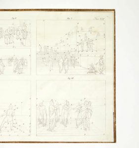 Atlas seul de cet ouvrage exclusivement consacré à la perspective des scènes de théâtre, par Francesco Cocchi (1788-1865), peintre italien et décorateur de théâtre. Après avoir fait ses débuts à l'académie des beaux-arts de Bologne sous la direction d'Antonio Basoli (1774-1848), il se spécialisa dans les décors de théâtre, il travailla à Lisbonne, Copenhague, Hambourg et Saint-Pétersbourg. Après un long séjour à Hambourg il retourna dans sa ville natale où il enseigna l'architecture et la perspective. Les 25 planches illustrent des détails de construction de scène, la dernière étant animée par des acteurs.
