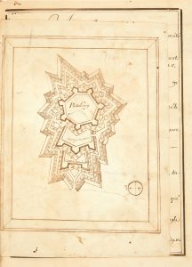 Élégant manuscrit calligraphié sur les fortifications, illustré de nombreuses figures. Un plan sur un feuillet ajouté, de plus petite taille.