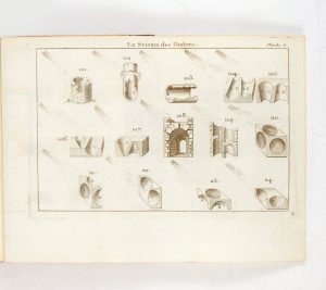 Paris, Charles-Antoine Jombert, 1750. In-8 (197 x 123 mm) de XVI, 92 pp., 1 f.n.ch., III, 14 planches gravées, pp. [97]-168, 2 ff.n.ch., 4 planches gravées hors texte; veau tacheté, dos à nerfs orné, tranches rouges (reliure de l' époque).