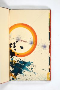 Exemplaire unique de cet étonnant ouvrage, orné de signes cabalistiques, formes géométriques, et d'un texte conçu à l'aide d'un alphabet imaginaire. Le titre est signé au crayon par Ely, accompagné de la date [19]91.