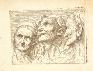Extraordinaire méthode de dessin illustrée de 137 gravures (dont le portrait de l'auteur) à l'eau-forte: proportions du corps humain, détails du visage, des mains et des pieds vus sous différents angles, expressions et contorsions, raccourcis, anamorphoses, exemples de compositions classiques ainsi que des explications et des figures mathématiques nécessaires au dessin.