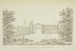 Bel atlas d'architecture exclusivement consacré à la Toscane. Divisé en 18 sections, chacune précédée d'un beau titre gravé, suivie des plans, parterres, façades et vues d'intérieurs. Les plans montrent des palais, églises et maisons à Florence, Sienne, Arezzo, Livourne et Pise. Les gravures et vues ont été dessinées dans une perspective parfaite par Grandjean et Famin, qui ont dressé une table chronologique des architectes mentionnés dans le livre (Giotto, Alberti, Michel-Ange, Brunelleschi, Scamozzi, Vasari). Grandjean de Montigny exerça sa profession en France et en Italie, et restaura également le palais de Bellevue à Cassel lors du règne de Jérôme Bonaparte, frère de Napoléon.