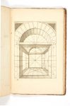 Grondige Onderrichtinge in de Optica, ofte Perspective Konste, zeet dienstig voor Schilders, Teekenaars, Plaatsnyders, Bouwkonstenaaren, &c. Amsterdam, Josua Ottens, sans date [1640]. In-folio (333 x 210 mm) d'un frontispice gravé, un titre, 12 ff.n.ch. de texte, 43 illustrations numérotées tirées sur 36 feuilles dont une double; demi-basane brune à coins, dos à nerfs, pièce de titre de maroquin rouge (reliure de l' époque).